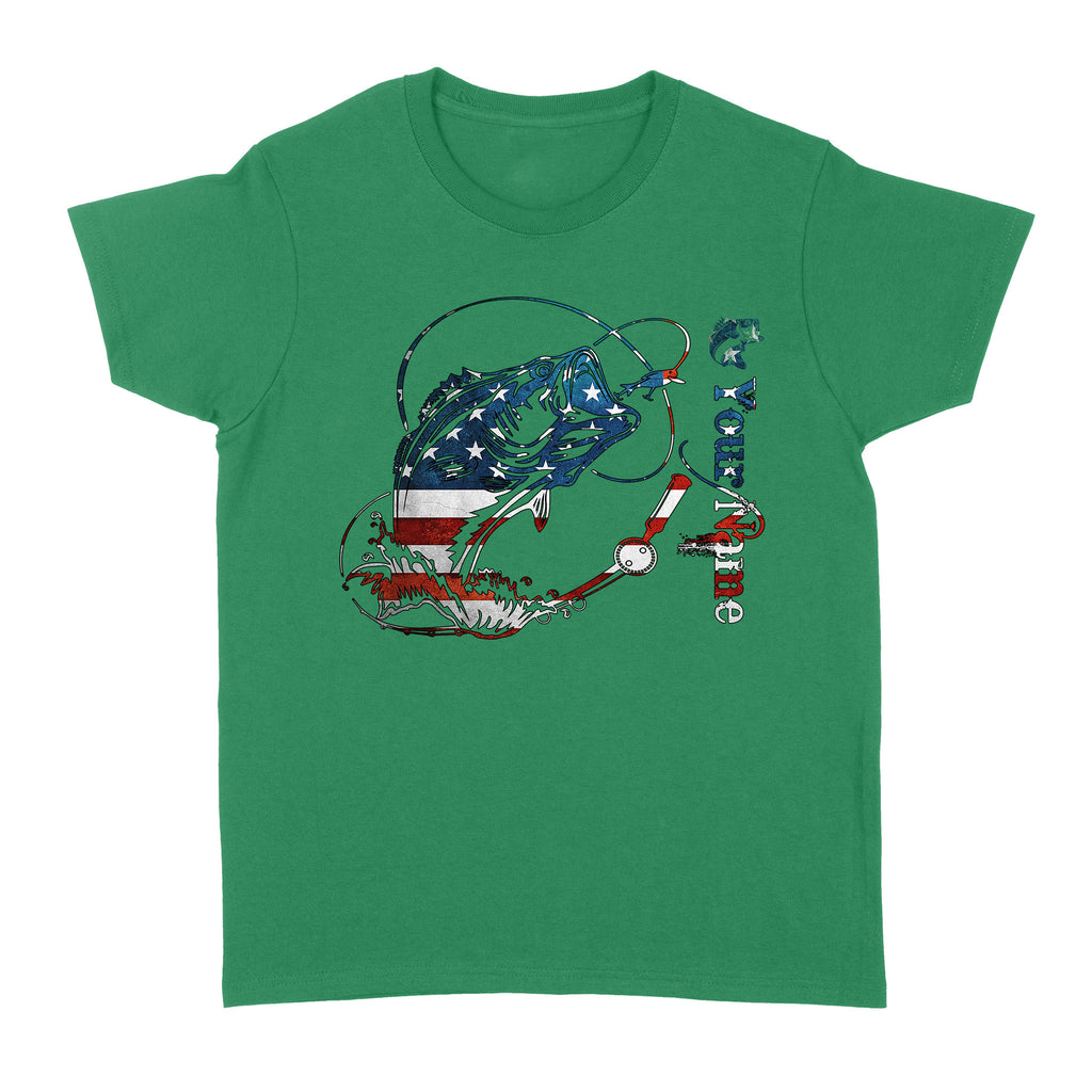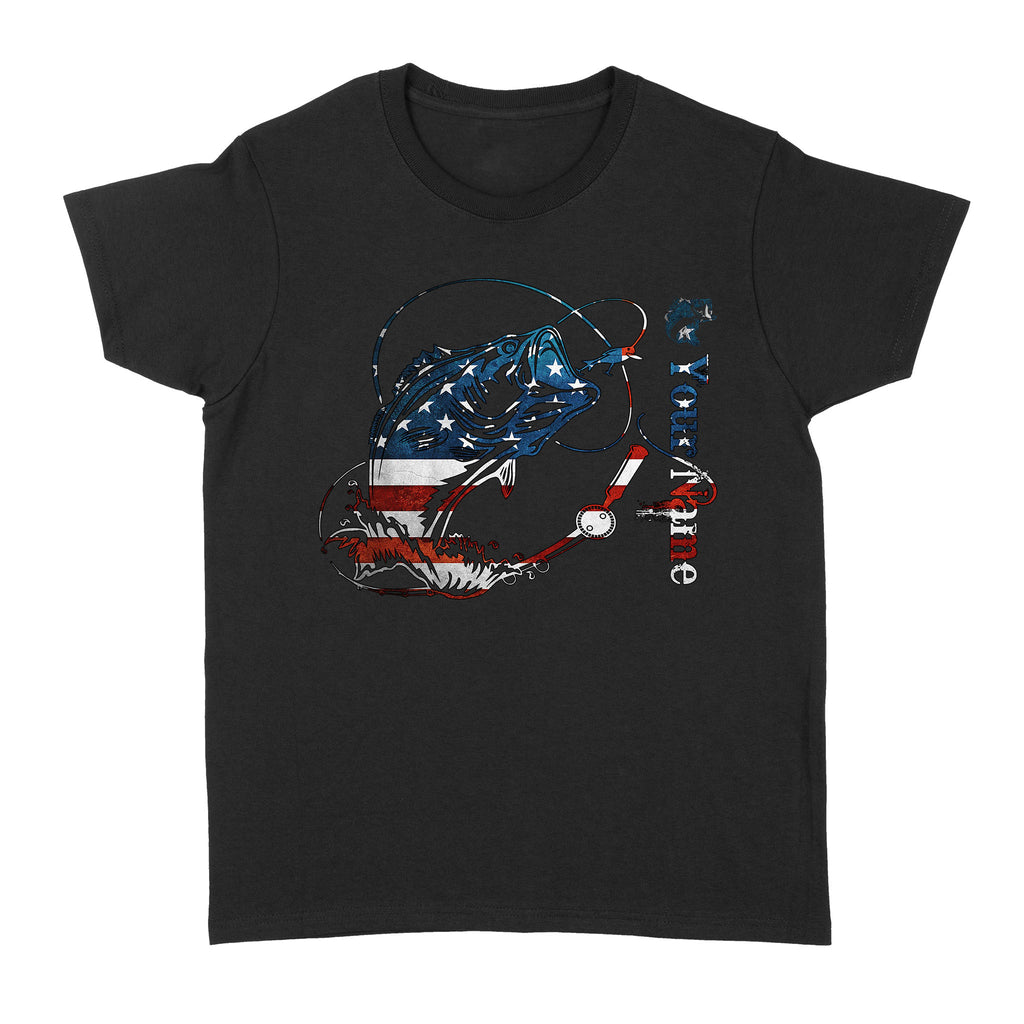 US Bass Fishing American Flag 4th July Custom name Women's T-shirt D02 NQS1248