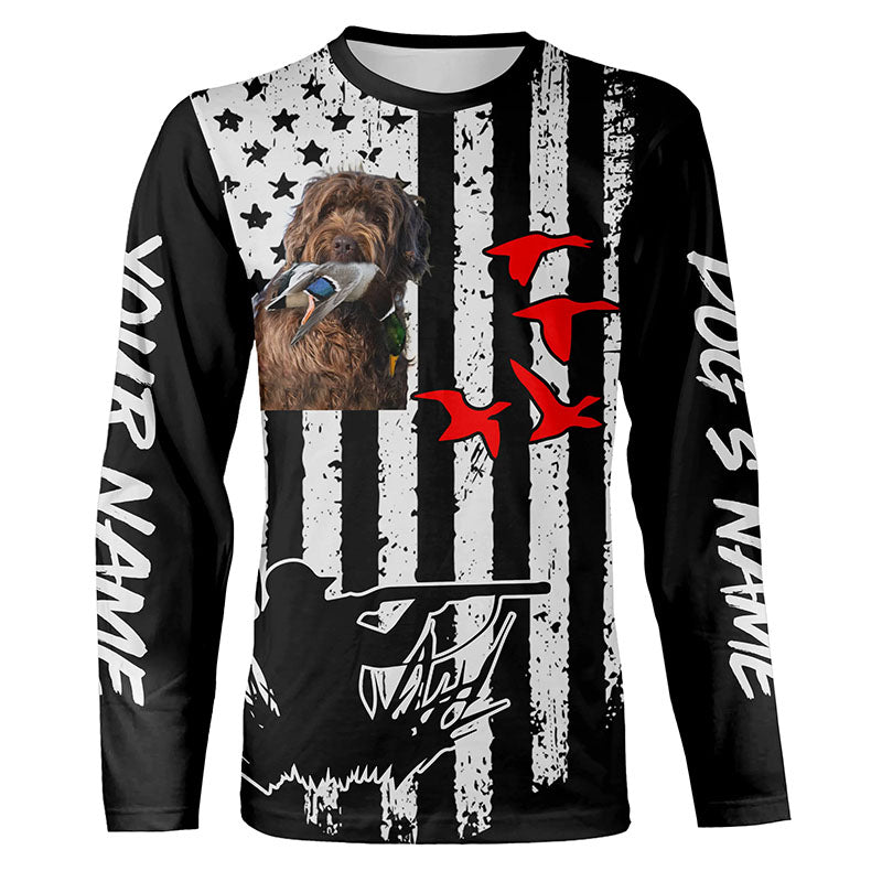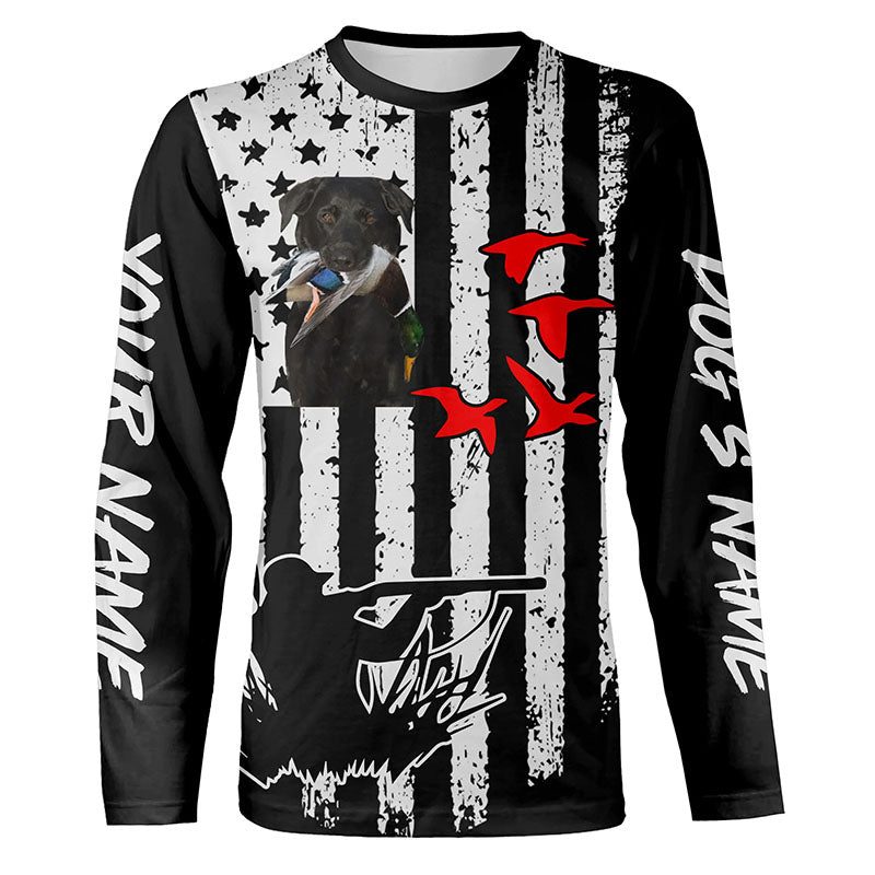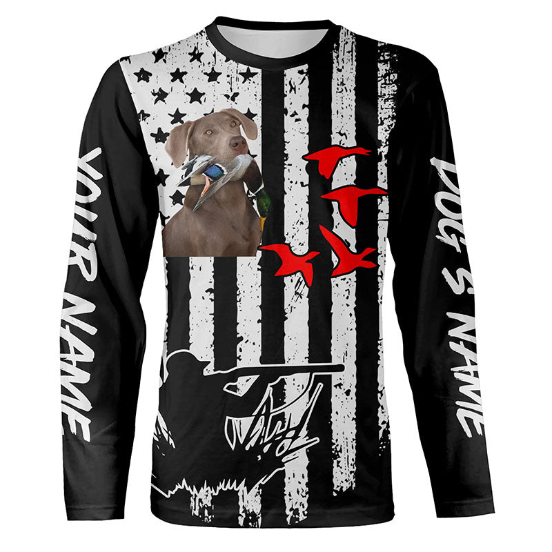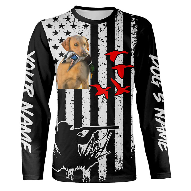 American Flag Duck Hunting with Dogs Custom Shirts, Duck Hunter Personalized Gifts FSD4527