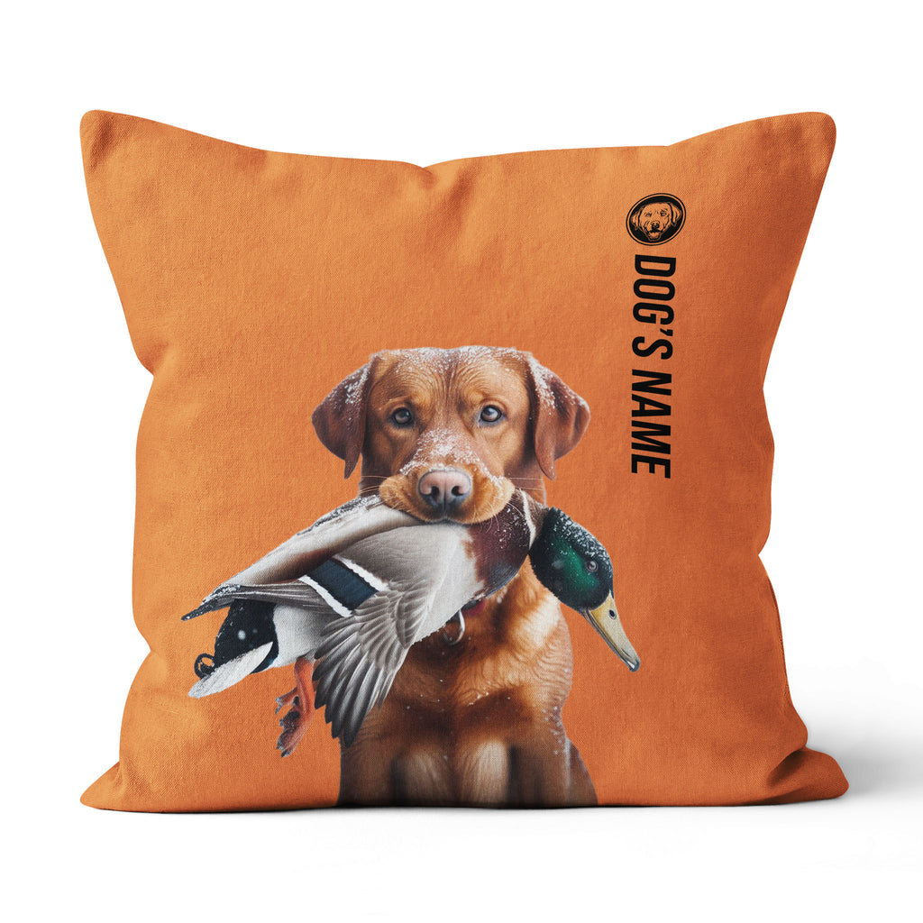 Fox red Labrador Retriever Hunting Dog Custom Dog's Name Orange Pillow, Hunting Dog Pillows FSD4404