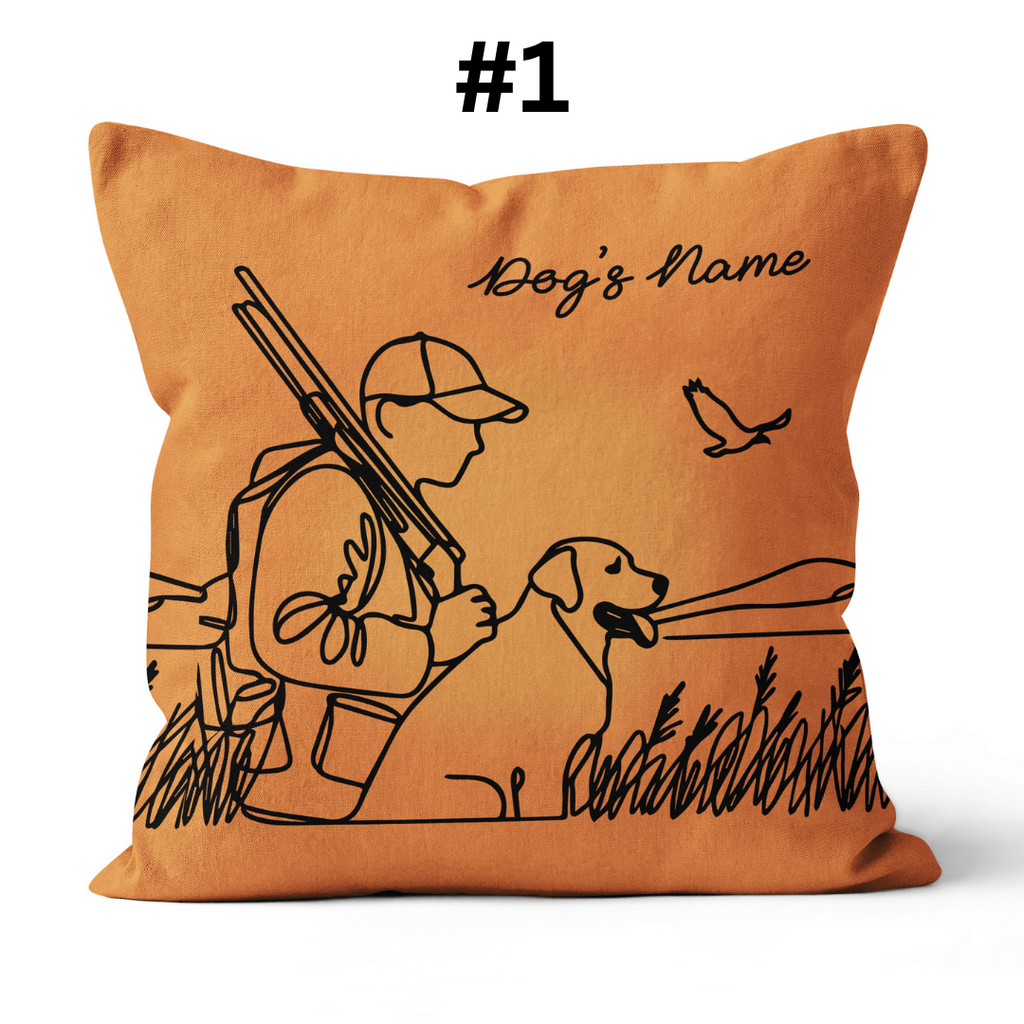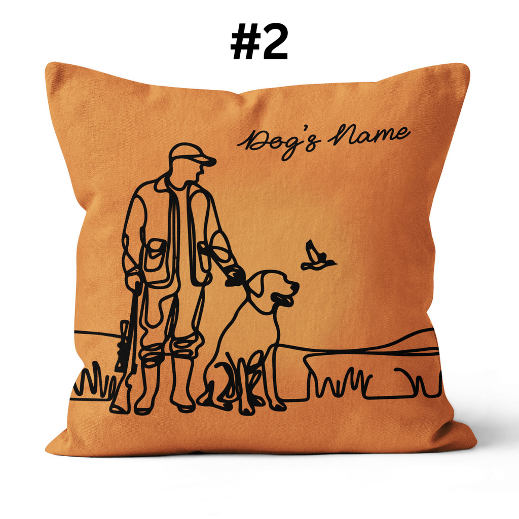 Hunting Dog one Continuous Line Custom Name Pillow, Personalized Gifts for Hunters - FSD4410