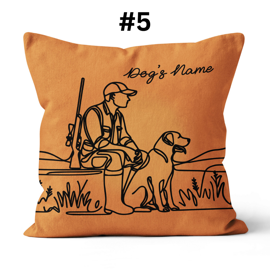 Elevate your space with a touch of personalized warmth and a nod to your passion for hunting with our Continuous Line Custom Name Pillows - Hunting Edition. Crafted with care, these unique pillows feature an intricately designed continuous line illustration of a loyal hunting dog, capturing the essence of the bond between a hunter and their devoted companion.