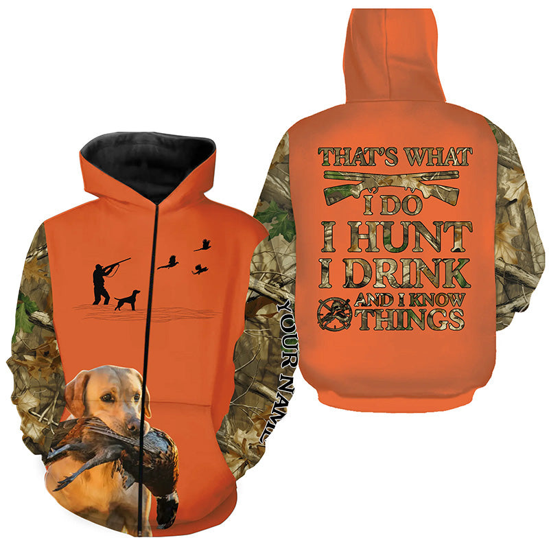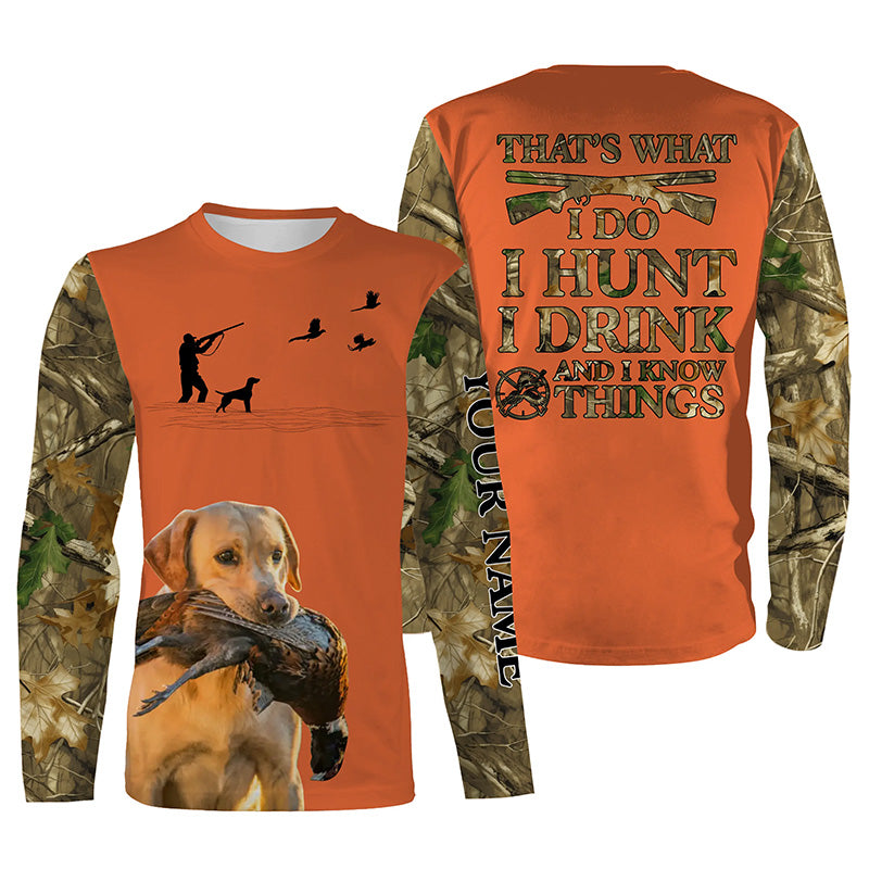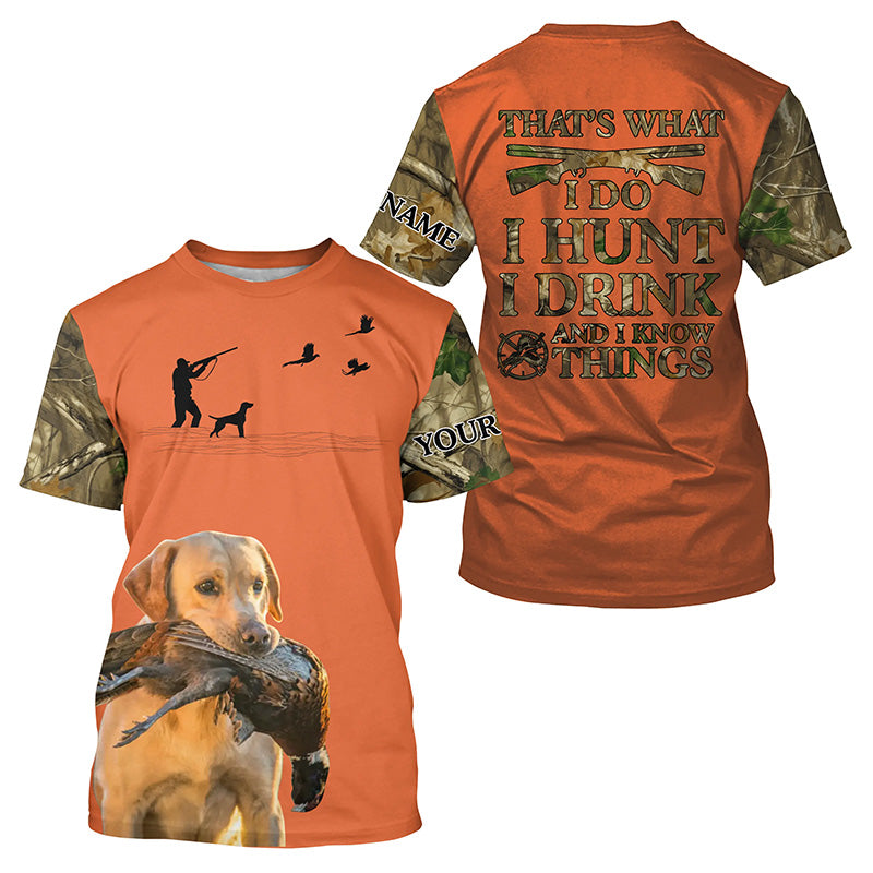 "I hunt I drink and I know things" orange hunting Shirts with Yellow Labs dog FSD4051