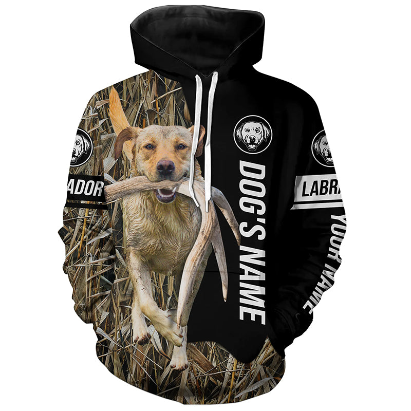 Yellow Labrador Retriever Hunting Dog Customized Name Camo Shirts for Hunters FSD4668