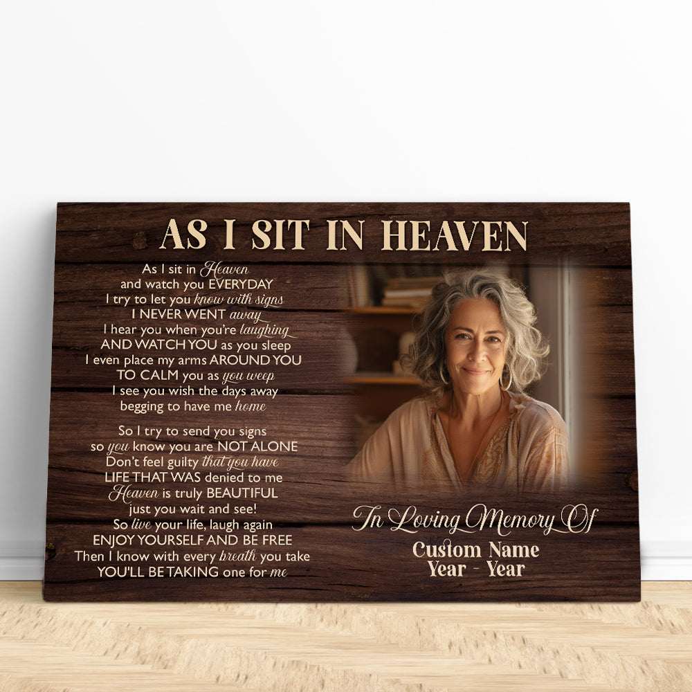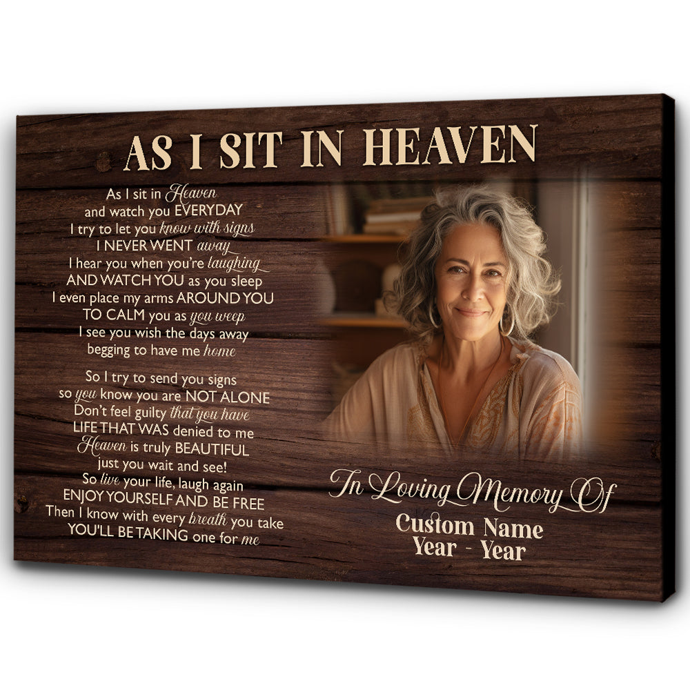 As I Sit In Heaven Memorial Canvas Gift| Bereavement Gift For Loss Of Dad Mom In Memory Gifts NXM449