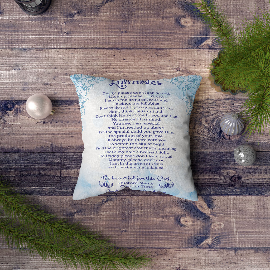 Baby Memorial Pillow| Too Beautiful For Earth Custom Miscarriage Memorial Sympathy Gift for Loss of Baby| JPL48