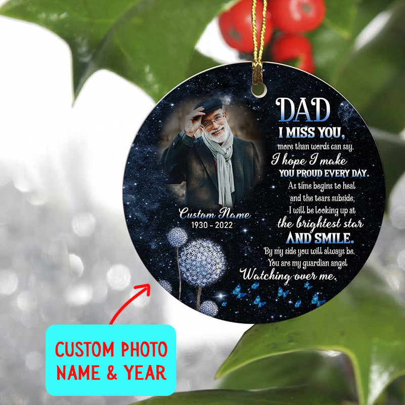The memory Christmas ornament with meaningful words, personalized picture, name and dates is a heartfelt remembrance keepsake for the loved ones in heaven in holiday season.