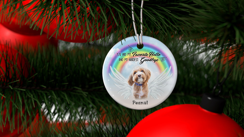 Favorite Hello Hardest Goodbye - Pet Memorial Ornament Custom Photo| Pet Loss Christmas Ornament, Remembrance for Loss of Dog, Loss of Cat| NOM12