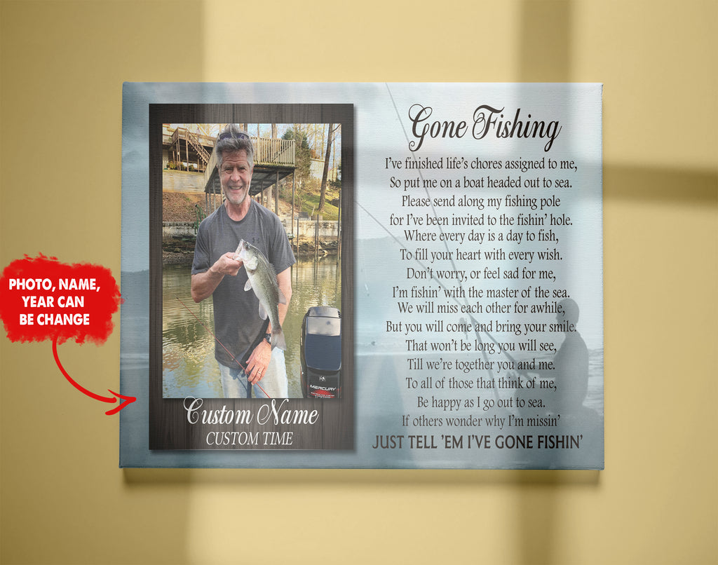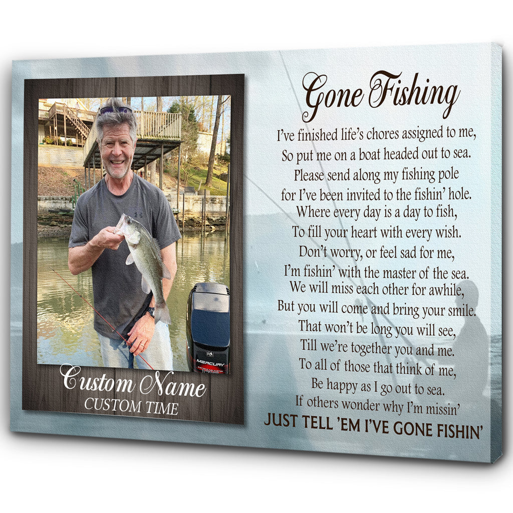 Gone Fishing Memorial Canvas Customized Fishing Memorial Gift Sympathy Gift for Loss of Father Husband Grandpa In Loving Memory of Fisherman Fishing Remembrance Canvas - JC673