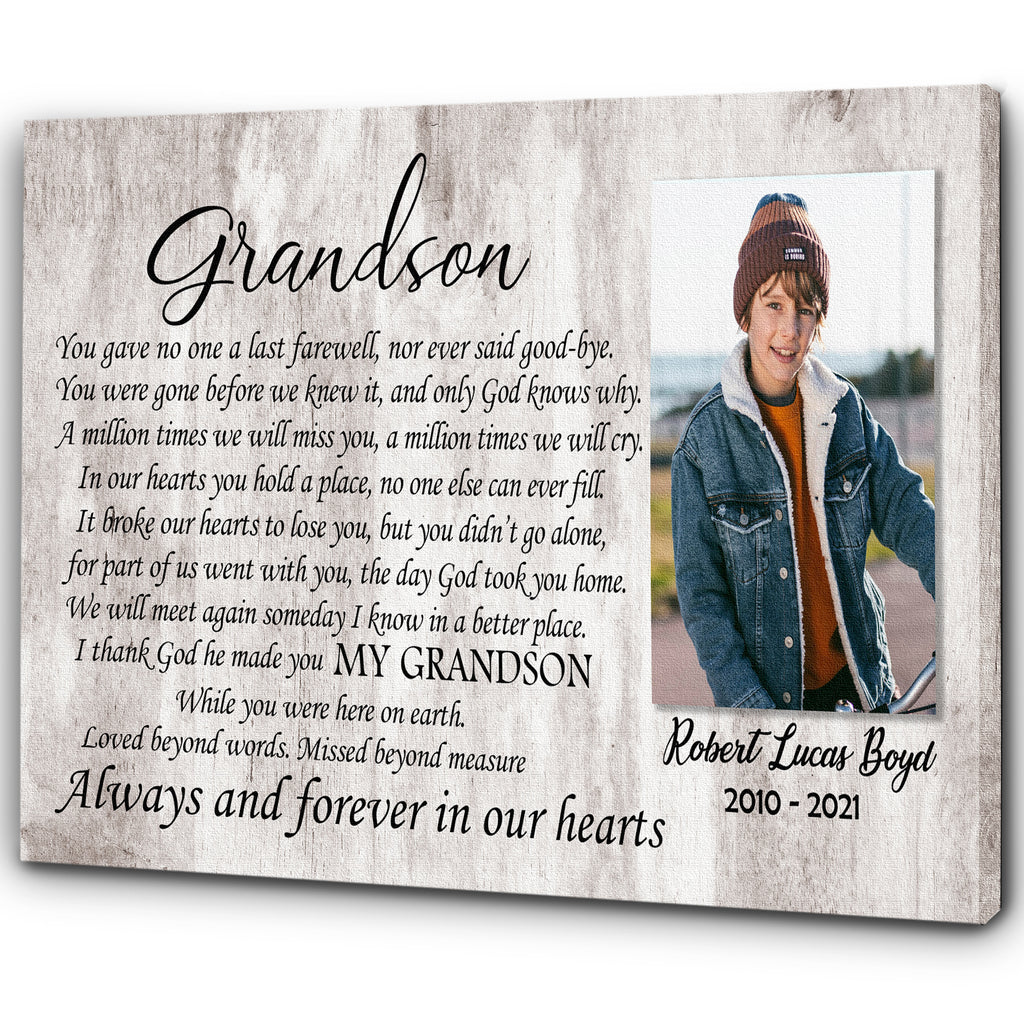 Grandson Memorial Canvas - Personalized Memorial Gift for Loss of Grandson Sympathy Gift In Memory of Grandson Remembrance Canvas Bereavement Condolence Keepsake Gift for Grandson - JC752