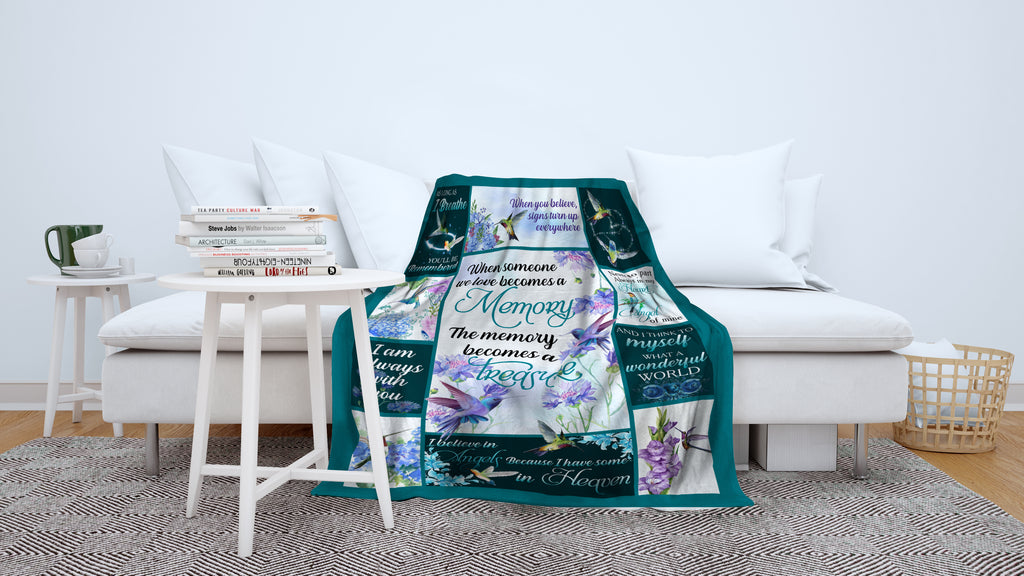 Hummingbird Memorial Blanket| In Loving Memory Remembrance Fleece Throw for Loss of Loved One, Loss of Wife, Husband | N1179