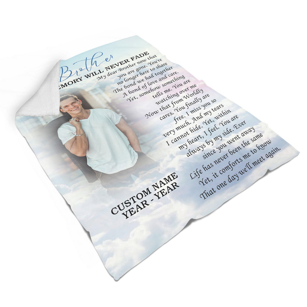 Memorial Blanket - Brother Memorial Custom Picture Blanket| Meaningful Remembrance Fleece Throw, Deepest Grief Sympathy Gift, Loss of Brother Memorial Blankets and Throws| N2153