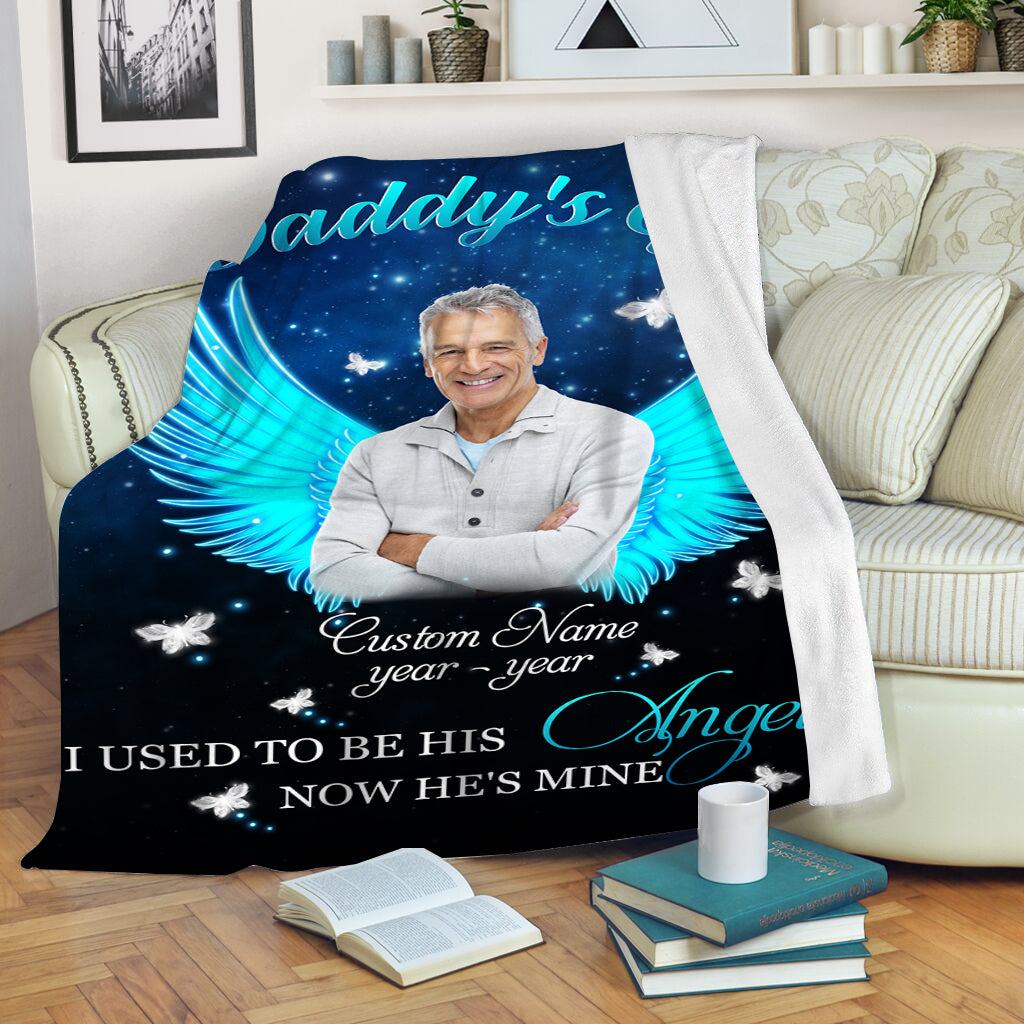 Memorial Blanket| Daddy's Girl - Custom Image Blanket | Angel Dad in Heaven| Meaningful Remembrance Fleece Throw, Deepest Grief Sympathy Gift for Loss of Father for Daughter| T217