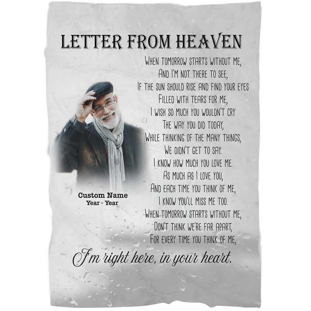Memorial Blanket - Letter from Heaven Fleece Blanket Personalized Memorial Gift Sympathy Gift for Loss of Father Mother Loved One in Heaven In Loving Memory Remembrance Blanket - JB274