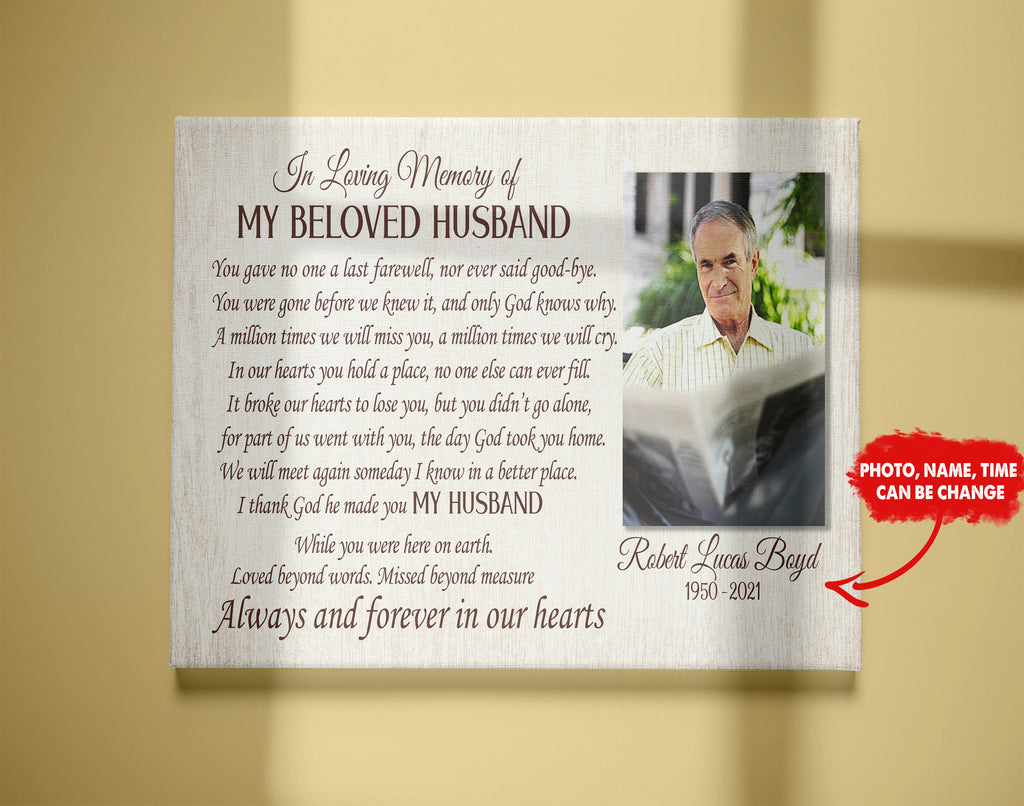 Memorial Canvas| In Loving Memory of My Beloved Husband Wall Art with Picture| Personalized Memorial Gift for Loss of Husband| Sympathy Gift for Husband in Heaven| JC677