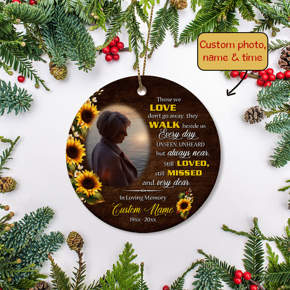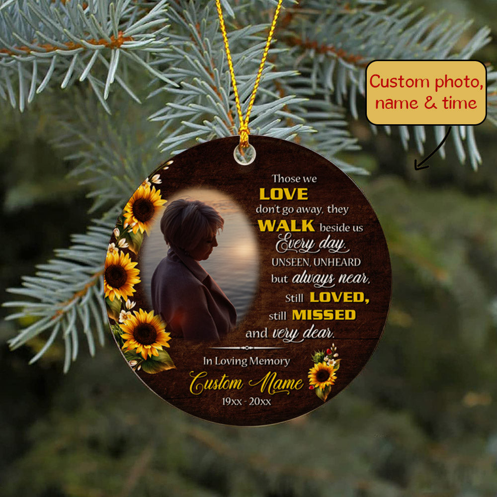 The memory Christmas ornament with meaningful words, personalized picture, name and dates is a heartfelt remembrance keepsake for the loved ones in heaven in holiday season.