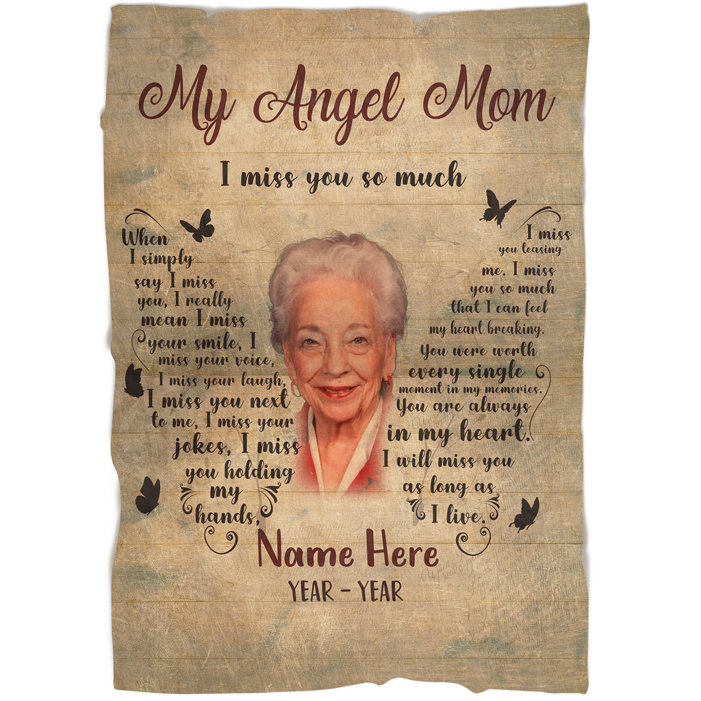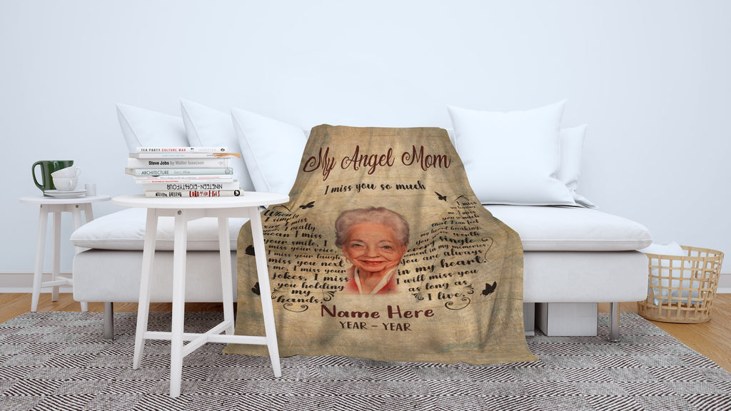 Mother Memorial Blanket - My Angel Mom, Personalized Memorial Throw Blanket for Loss of Mother, Mom Remembrance| N1396