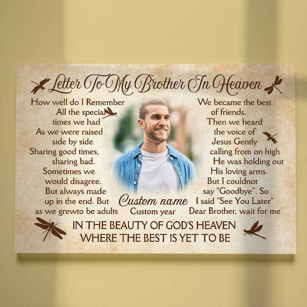 Personalized Brother Memorial Canvas Gift, Letter To My Brother In Heaven, Memorial for Loss of Brother NXM316
