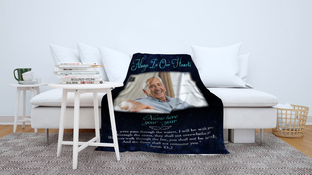 Personalized Memorial Blanket, Always in Our Heart| Remembrance Throw Blanket, Memorial Sympathy Gift| N1722
