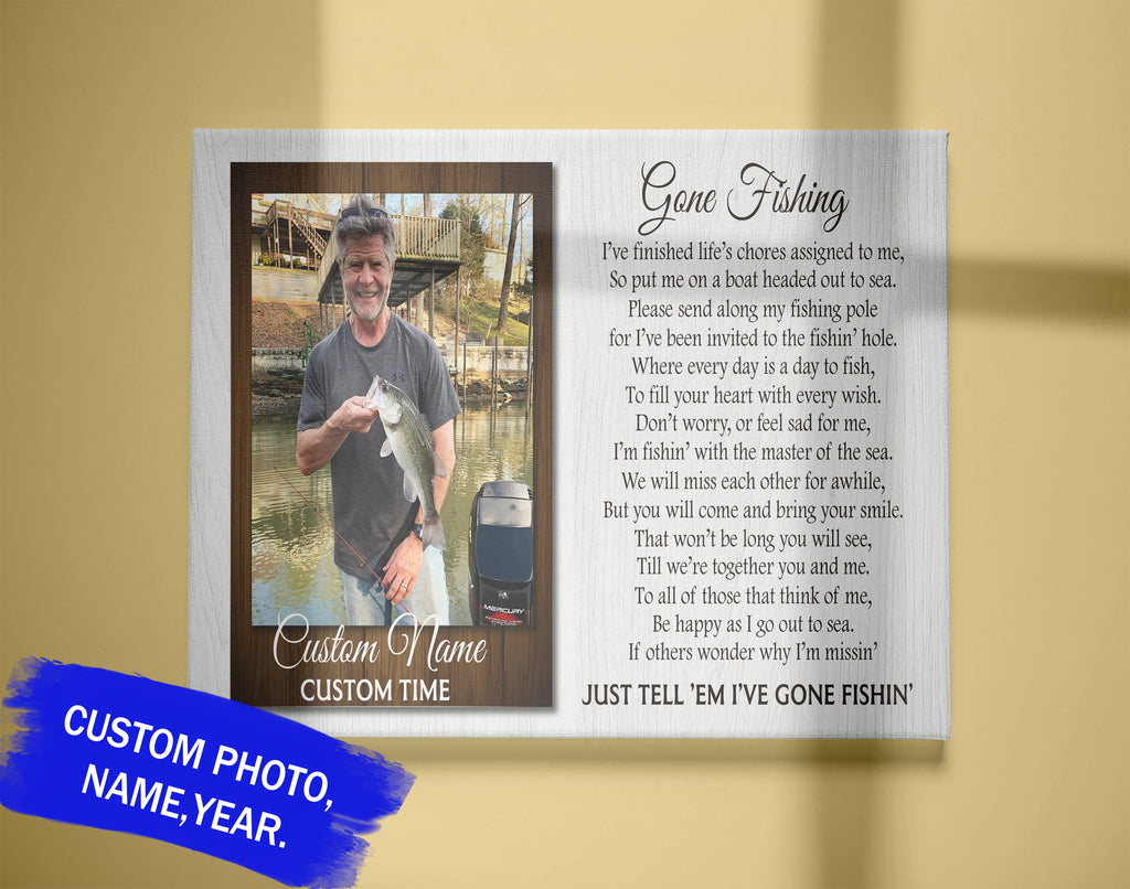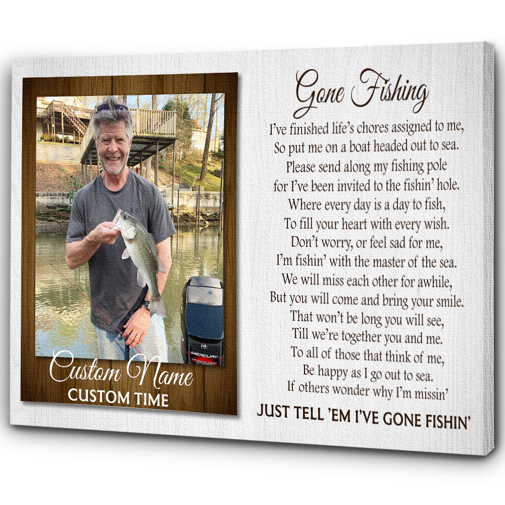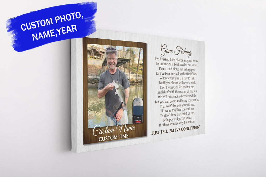 Personalized Memorial Canvas| Gone Fishing Wall Art| Fisherman Memorial Gift for Loss of Husband, Father, Fisherman, Fishing Sympathy Gift| Remembrance Bereavement Condolence Gift JC290