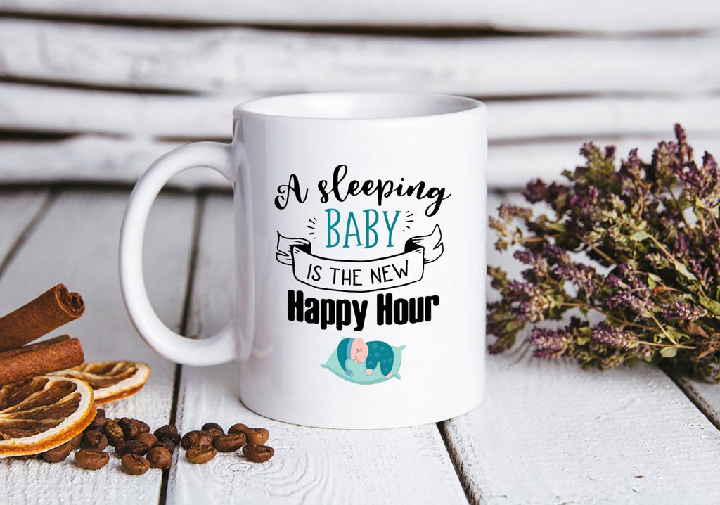 A Sleeping Baby Is The New Happy Hour | Funny New Mom Mug, First Mother's Day Gift, Baby Shower Gift, Momlife| N1159