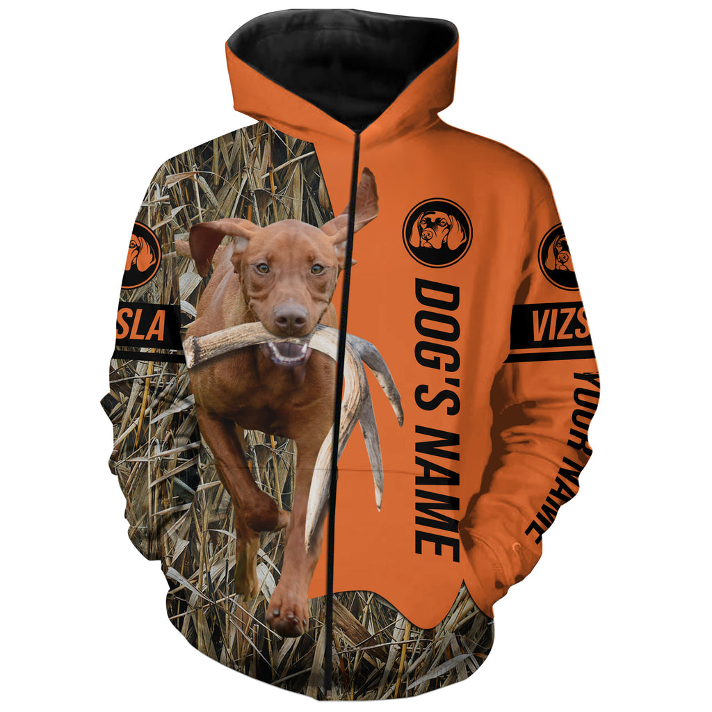 Vizsla Hunting Dog Customized Name Zip Up Hoodie Shirt for Hunters FSD4078